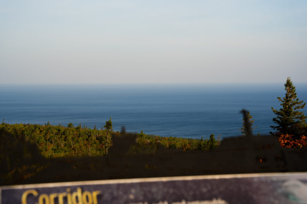 We were pulling up to the sunrise outlook at Brockway Mountain just as the sun was still half-covered by the horizon. It was beautiful watching it rise, with the crisp fall air blowing by.